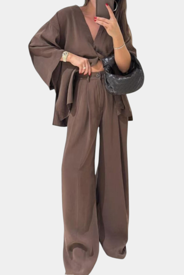 Eli Ensemble Oversize de Top à Col en V et Pantalon Droit